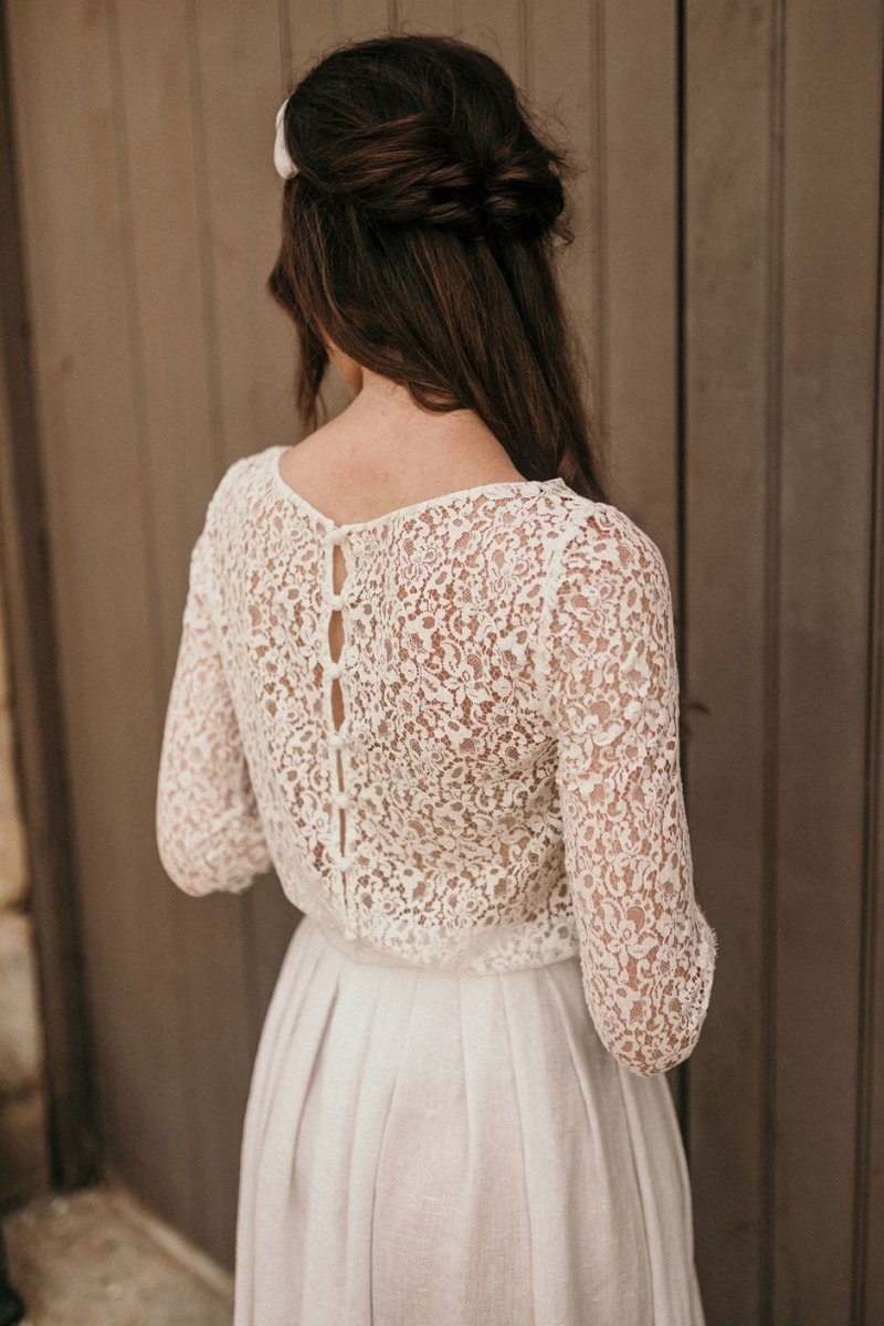 > Fermeture dos par petits boutons bombés assortis à la dentelle