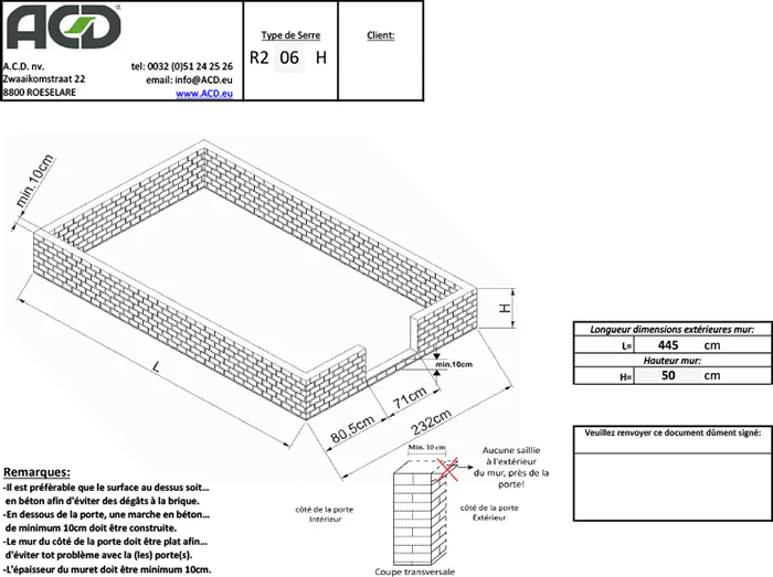 Allongez les portes de votre serre ACD® sur muret pour un accès confortable et une finition parfaite. Solution robuste et adaptée à votre installation.