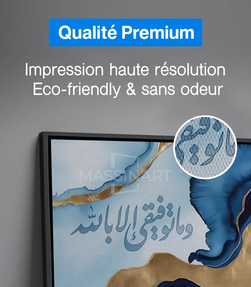 Découvrez nos tableaux exclusifs sur massinart.ma, alliant artisanat et modernité pour sublimer vos espaces. Chaque tableau est conçu à partir d’un châssis de 3 cm et d’une toile canvas artistique en coton (80 %), fabriquée en Allemagne. L’impression est réalisée en haute résolution avec des encres écologiques et sans odeur, garantissant une qualité exceptionnelle.