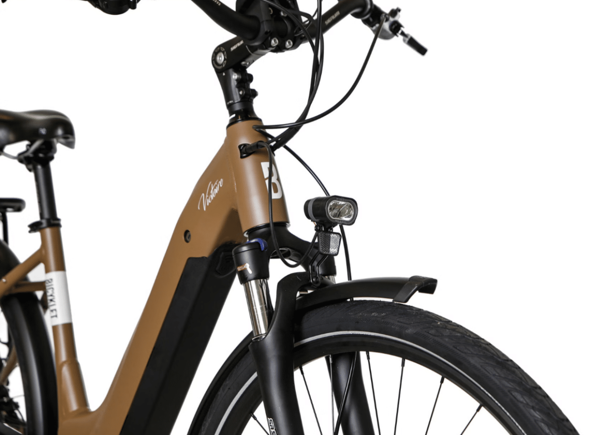 Le Bicyklet Victoire comprend une variété d’accessoires utiles, tels qu’un porte-bagages, des garde-boues, une béquille latérale, et des éclairages avant et arrière, assurant une préparation optimale pour les déplacements urbains par tous les temps. L’écran Bosch Intuvia propose une gestion simple des niveaux d’assistance et de l’autonomie de la batterie.