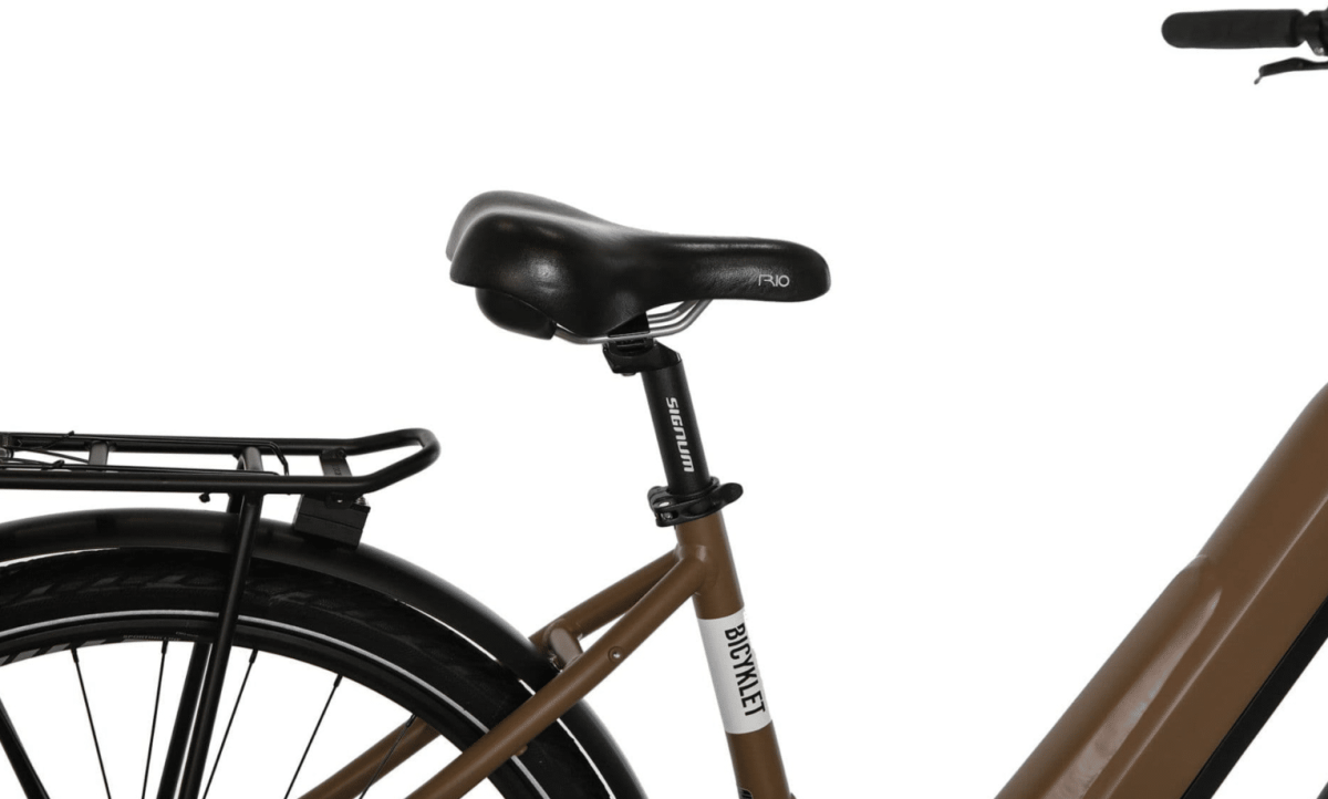 Le confort de ce vélo est assuré par sa fourche Suntour Nex E-25 avec un débattement de 63 mm et ses pneus CST de 700×45 (28 pouces), qui absorbent les chocs et les irrégularités de la route. La selle Signum City Line et la tige de selle en aluminium ajoutent encore plus de confort à vos trajets.