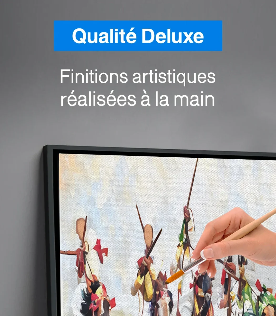 • Qualité Deluxe : Reproduction manuelle par nos artistes talentueux. Après l’impression, un travail de retouches met en valeur les reliefs et les détails artistiques pour un rendu unique et authentique.