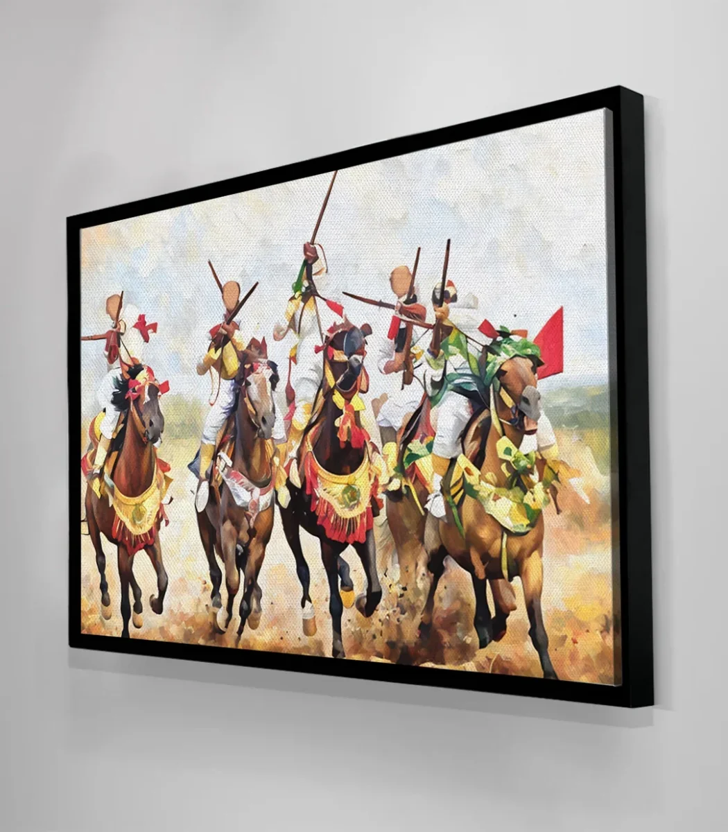 Découvrez nos tableaux exclusifs sur massinart.ma, alliant artisanat et modernité pour sublimer vos espaces. Chaque tableau est conçu à partir d’un châssis de 3 cm et d’une toile canvas artistique en coton (80 %), fabriquée en Allemagne. L’impression est réalisée en haute résolution avec des encres écologiques et sans odeur, garantissant une qualité exceptionnelle.
