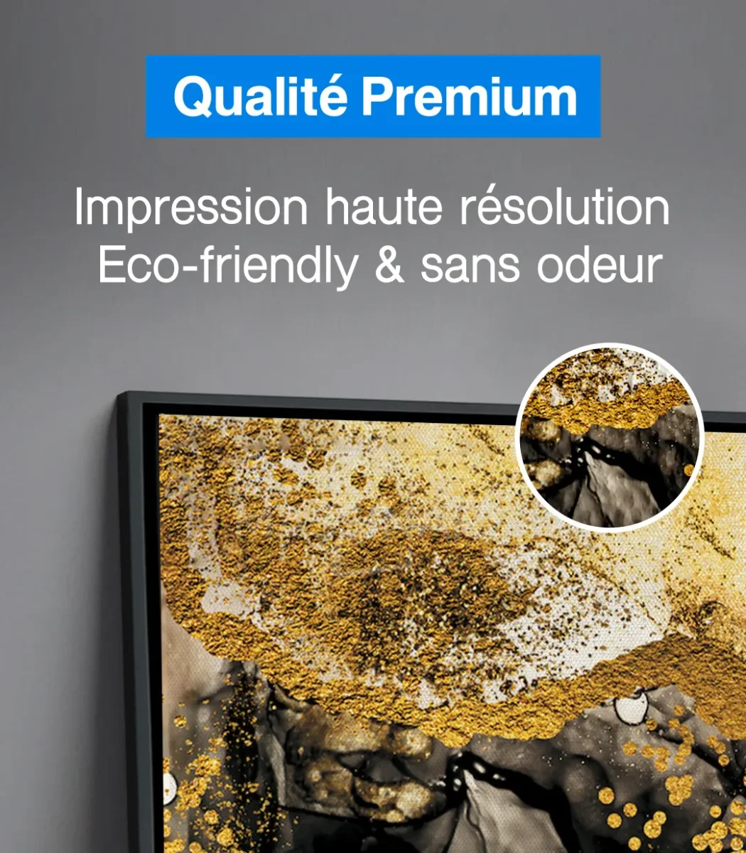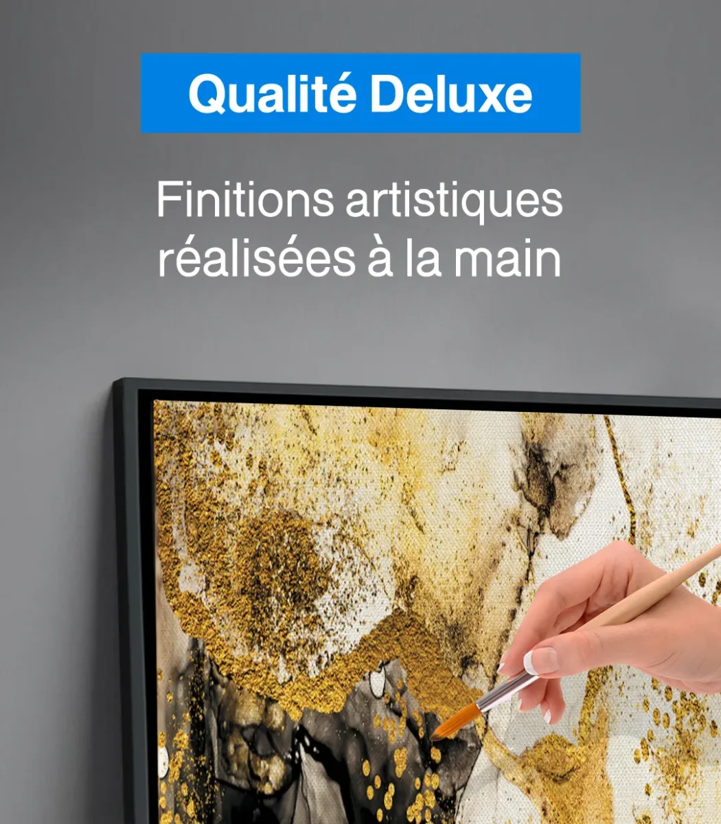 Tous nos tableaux sont des créations 100 % originales, avec la possibilité d’ajouter un cadre américain luxueux en bois massif. Livrés prêts à accrocher avec un kit de fixation offert une installation facile et sans dommage pour vos murs.