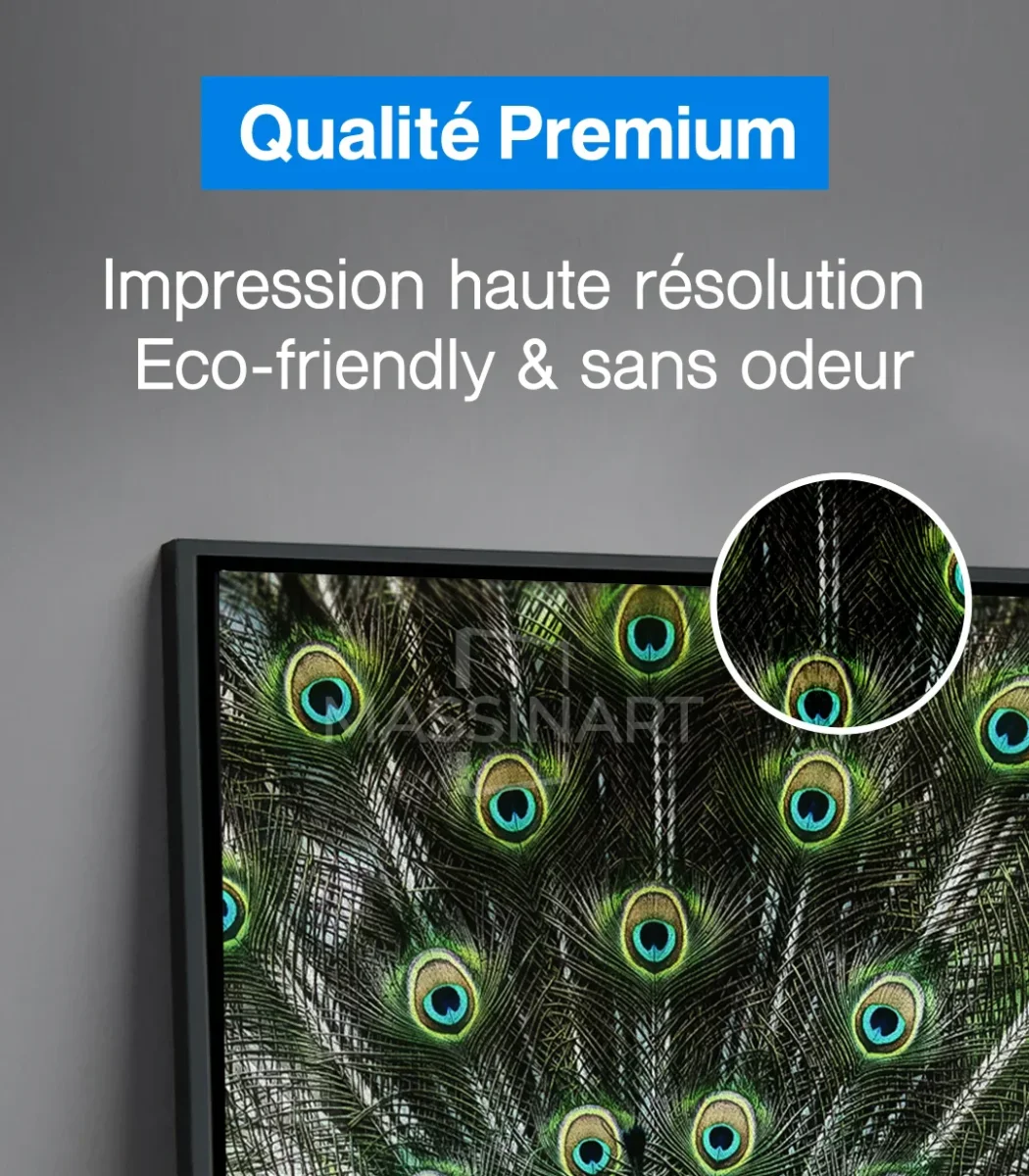 Découvrez nos tableaux exclusifs sur massinart.ma, alliant artisanat et modernité pour sublimer vos espaces. Chaque tableau est conçu à partir d’un châssis de 3 cm et d’une toile canvas artistique en coton (80 %), fabriquée en Allemagne. L’impression est réalisée en haute résolution avec des encres écologiques et sans odeur, garantissant une qualité exceptionnelle.