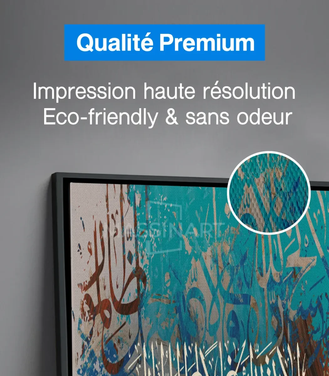Découvrez nos tableaux exclusifs sur massinart.ma, alliant artisanat et modernité pour sublimer vos espaces. Chaque tableau est conçu à partir d’un châssis de 3 cm et d’une toile canvas artistique en coton (80 %), fabriquée en Allemagne. L’impression est réalisée en haute résolution avec des encres écologiques et sans odeur, garantissant une qualité exceptionnelle.