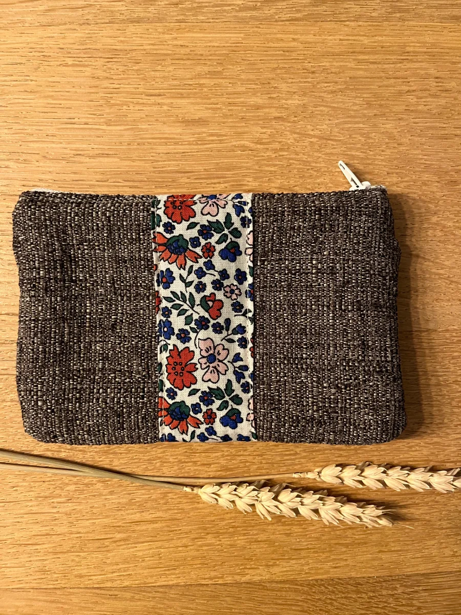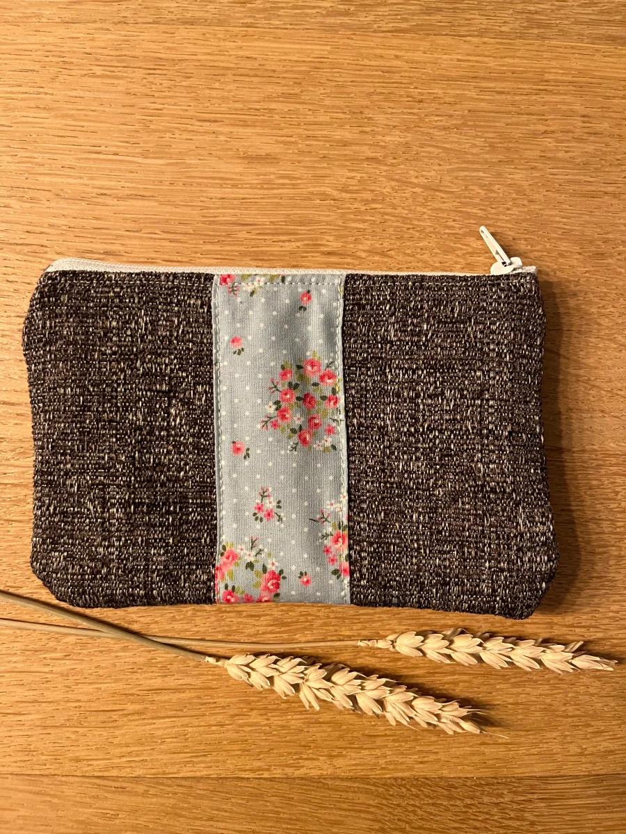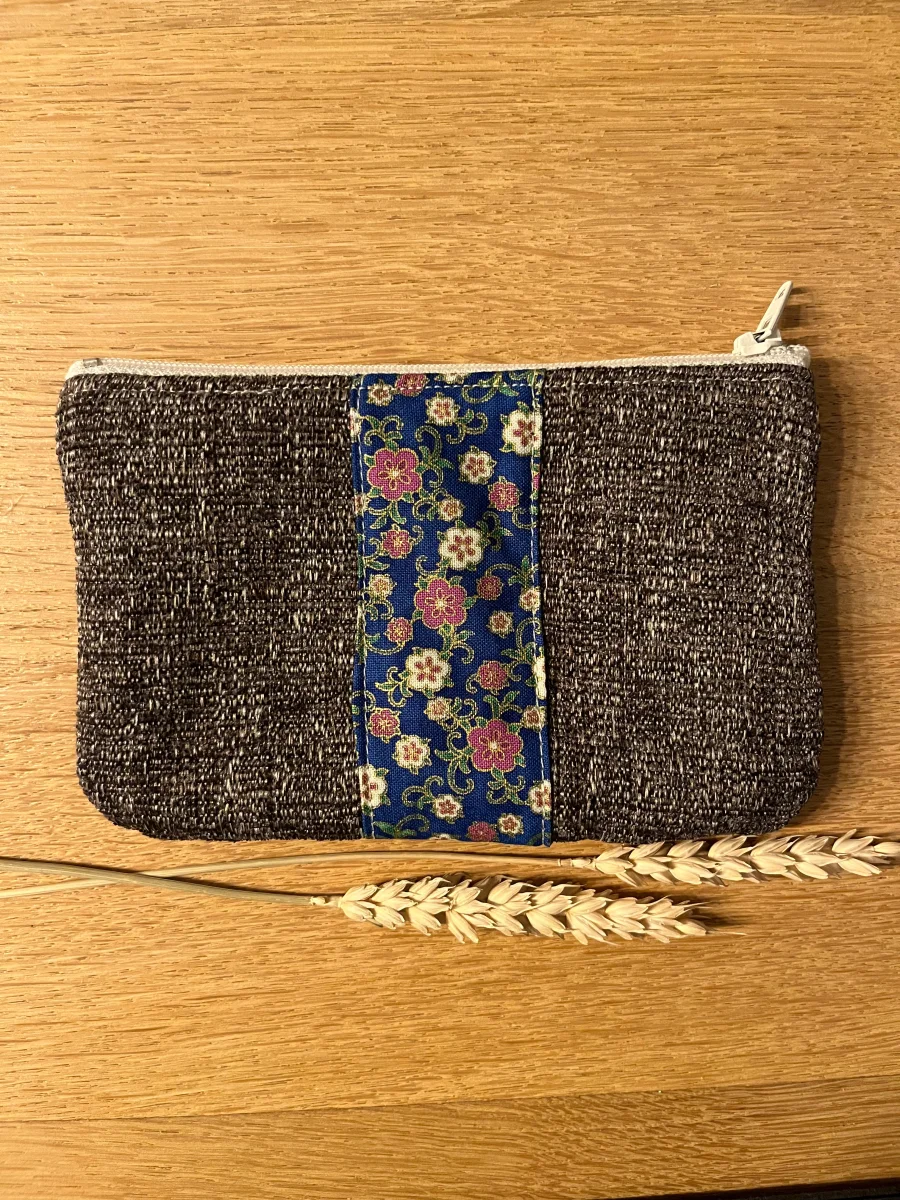 Porte monnaie doublé en coton fantaisie, fermeture par zip. Dimensions 15,5×10,5cm