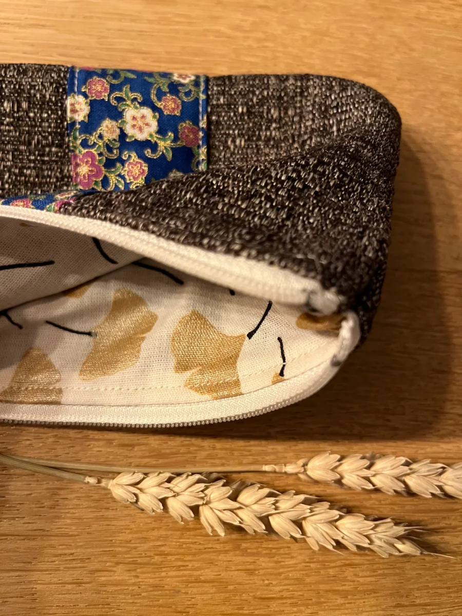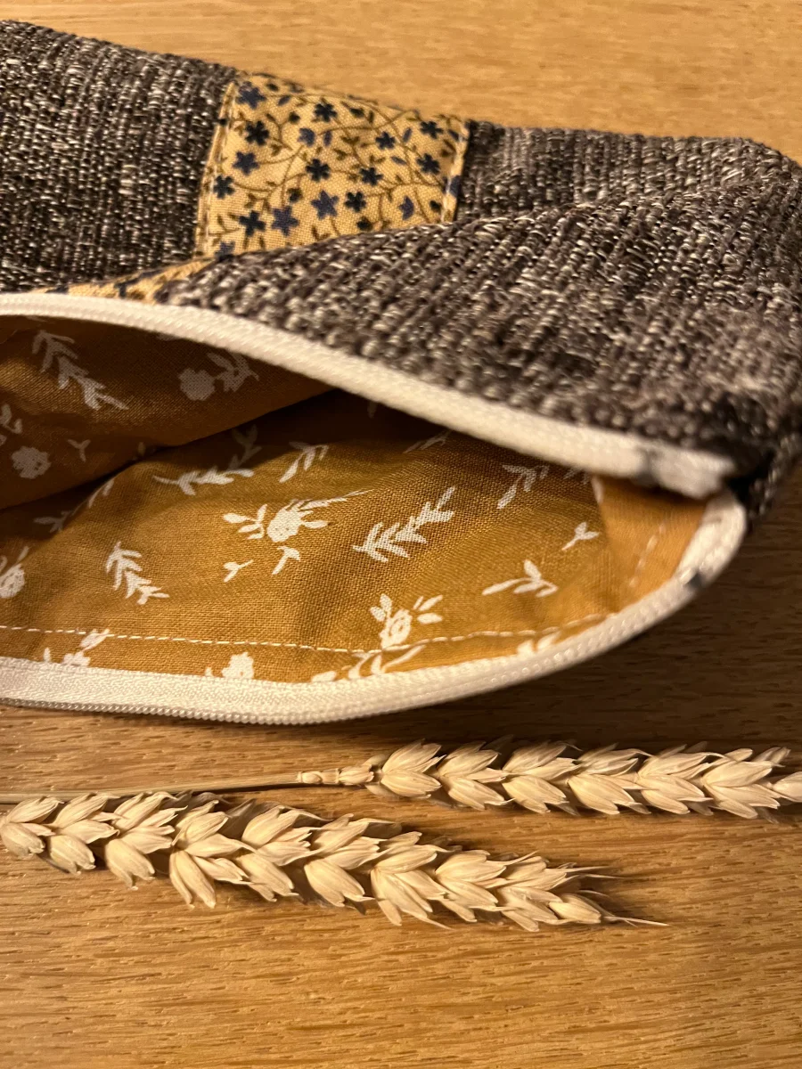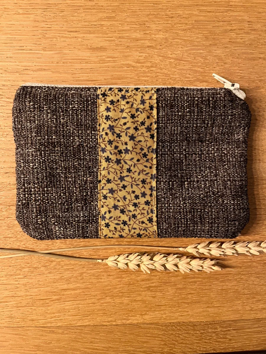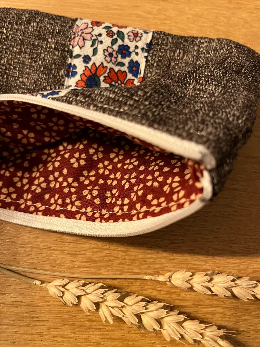 Porte monnaie doublé en coton fantaisie, fermeture par zip. Dimensions 15,5×10,5cm