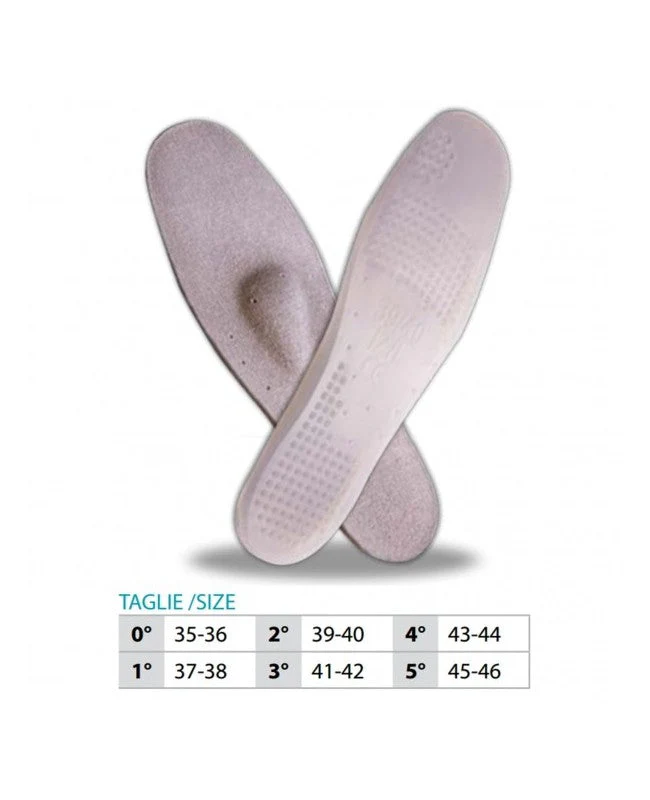 Cette semelle intérieure Orione en silicone fine et perforée recouverte de tissu élastique comprend un bcoussinet métatarsien intégré avec silicone à densité différenciée pour une meilleure absorption des chocs et un soutien longitudinal pour la voûte plantaire.