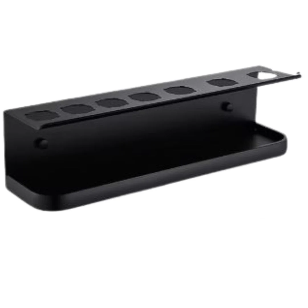 Ce support révolutionnaire en acier inoxydable offre 7 trous et 1 crochet en forme de J pour ranger tous vos accessoires de coiffure de manière organisée.