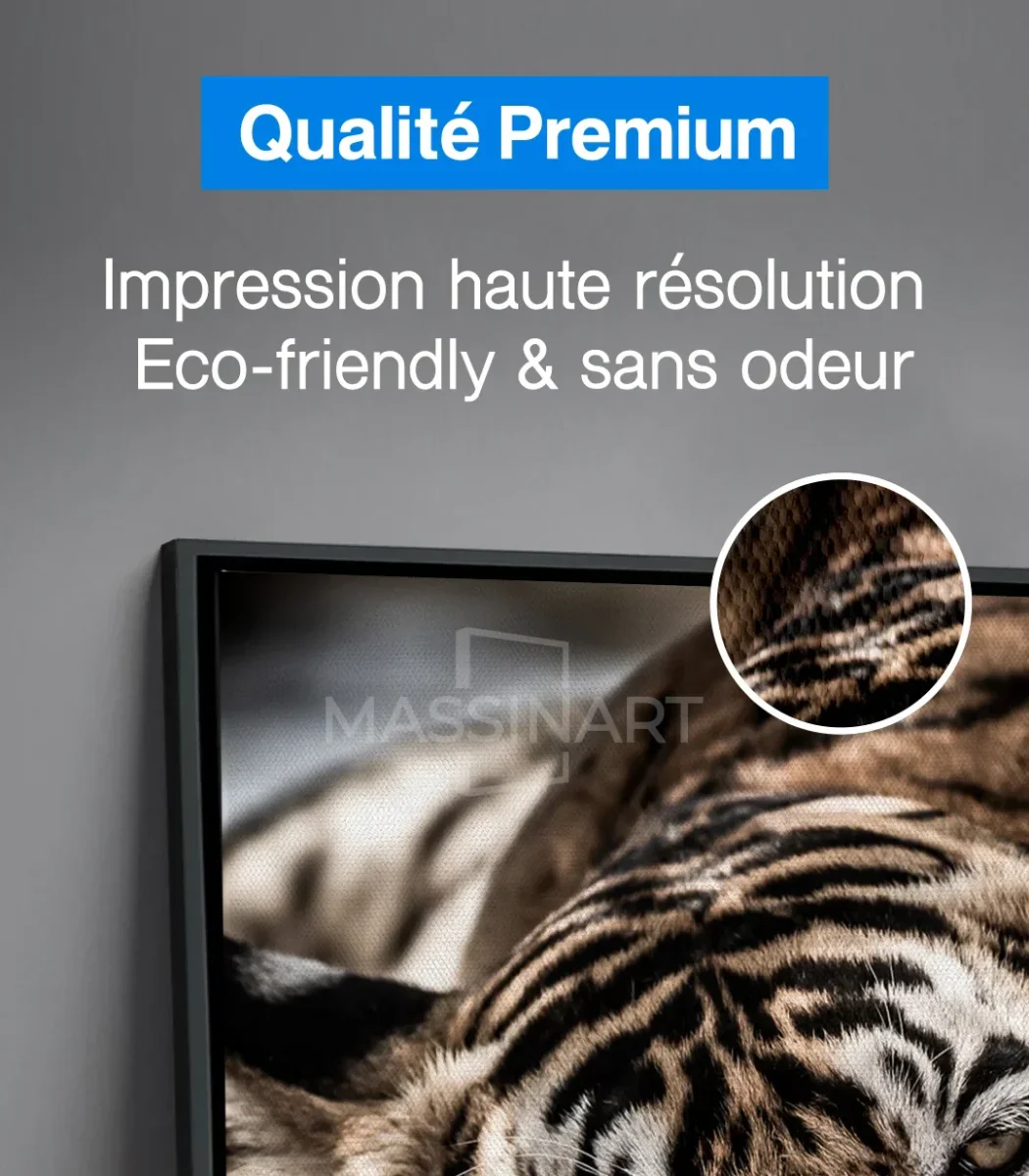 Découvrez nos tableaux exclusifs sur massinart.ma, alliant artisanat et modernité pour sublimer vos espaces. Chaque tableau est conçu à partir d’un châssis de 3 cm et d’une toile canvas artistique en coton (80 %), fabriquée en Allemagne. L’impression est réalisée en haute résolution avec des encres écologiques et sans odeur, garantissant une qualité exceptionnelle.